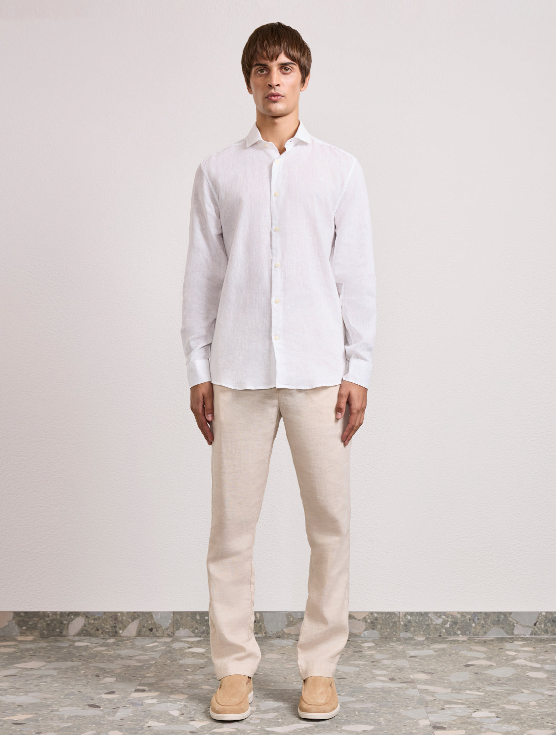 Our bestselling Antonio shirt is a house classic. Casual but refined, Antonio is the definitive FRESCOBOL CARIOCA shirt for leisure time dressing. Cut from the finest luxury linen, Antonio features a cutaway collar and imitation mother of pearl buttons. Perfect worn alone or under a jacket for a smart-casual look.