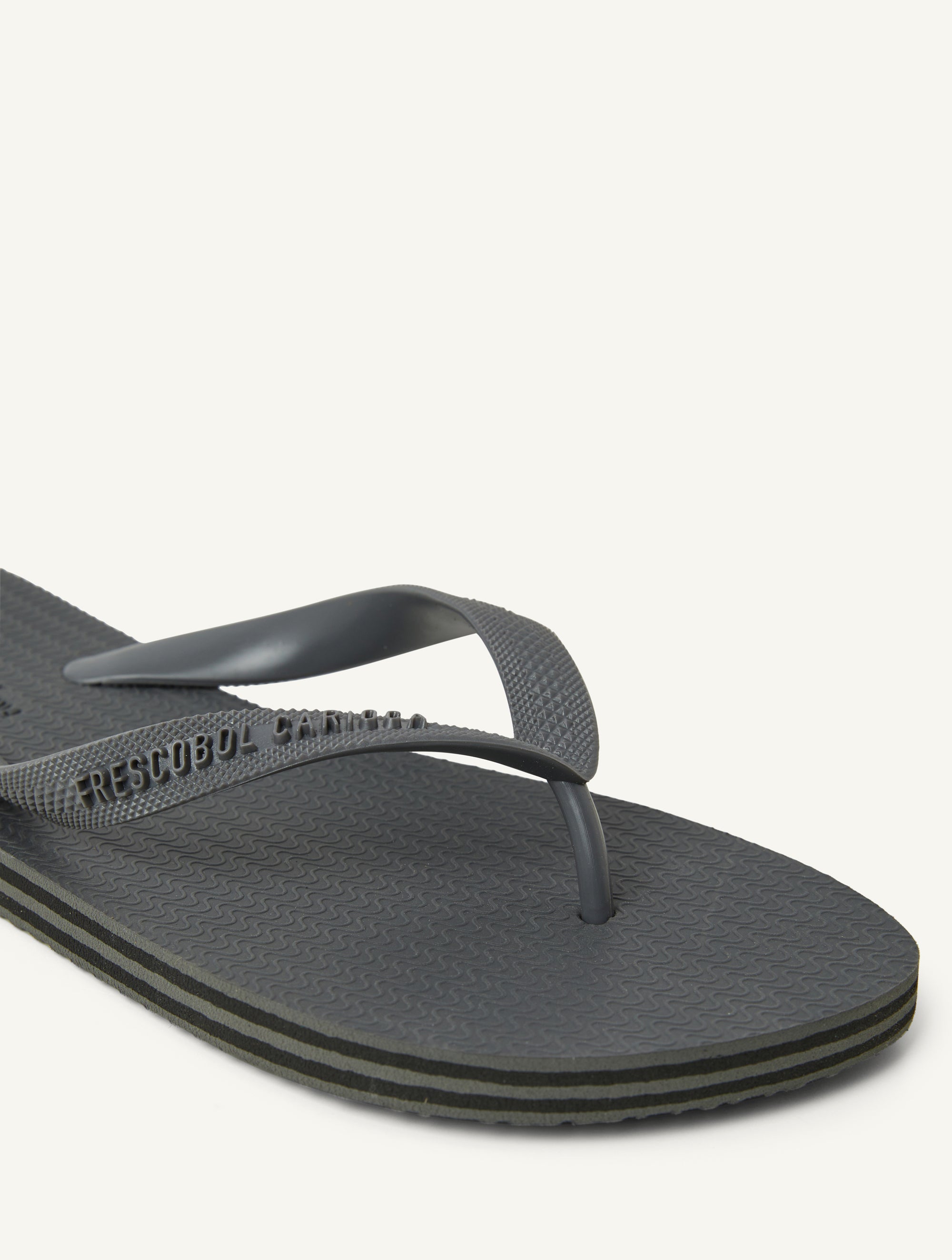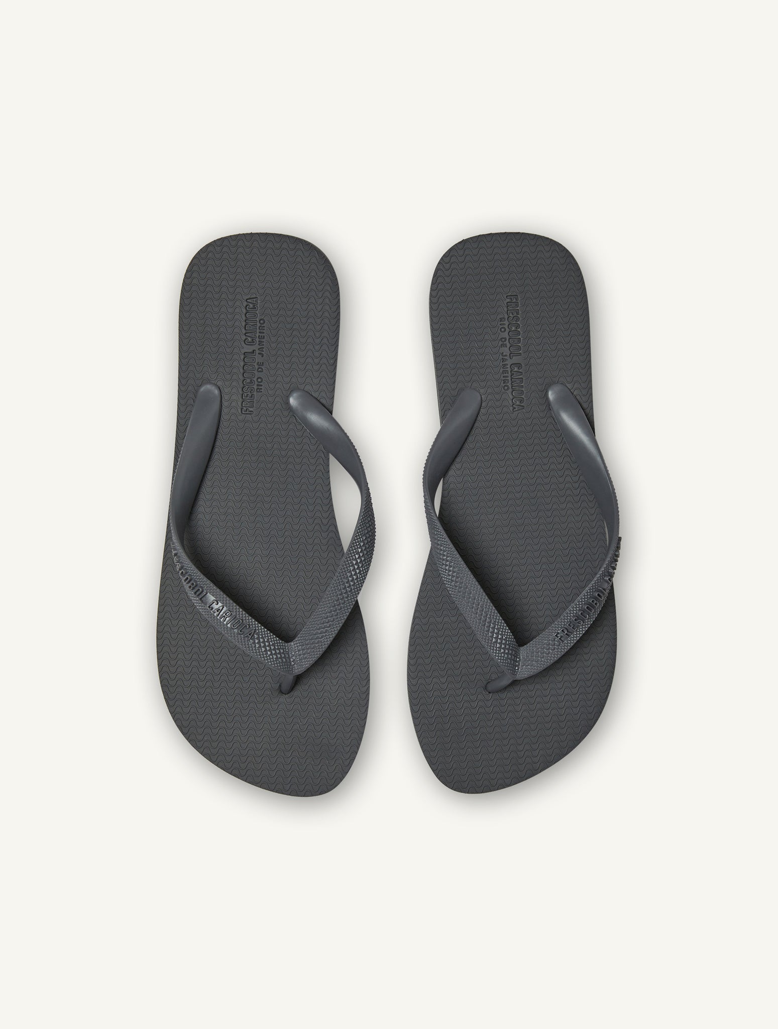A Brazillian basic, our flip flops are a Carioca essential. Crafted from flexible EVA with a PVC strap for unbeatable comfort and durability, leave unique footprints in the sand this summer with our iconic Copacabana print embossed soles.