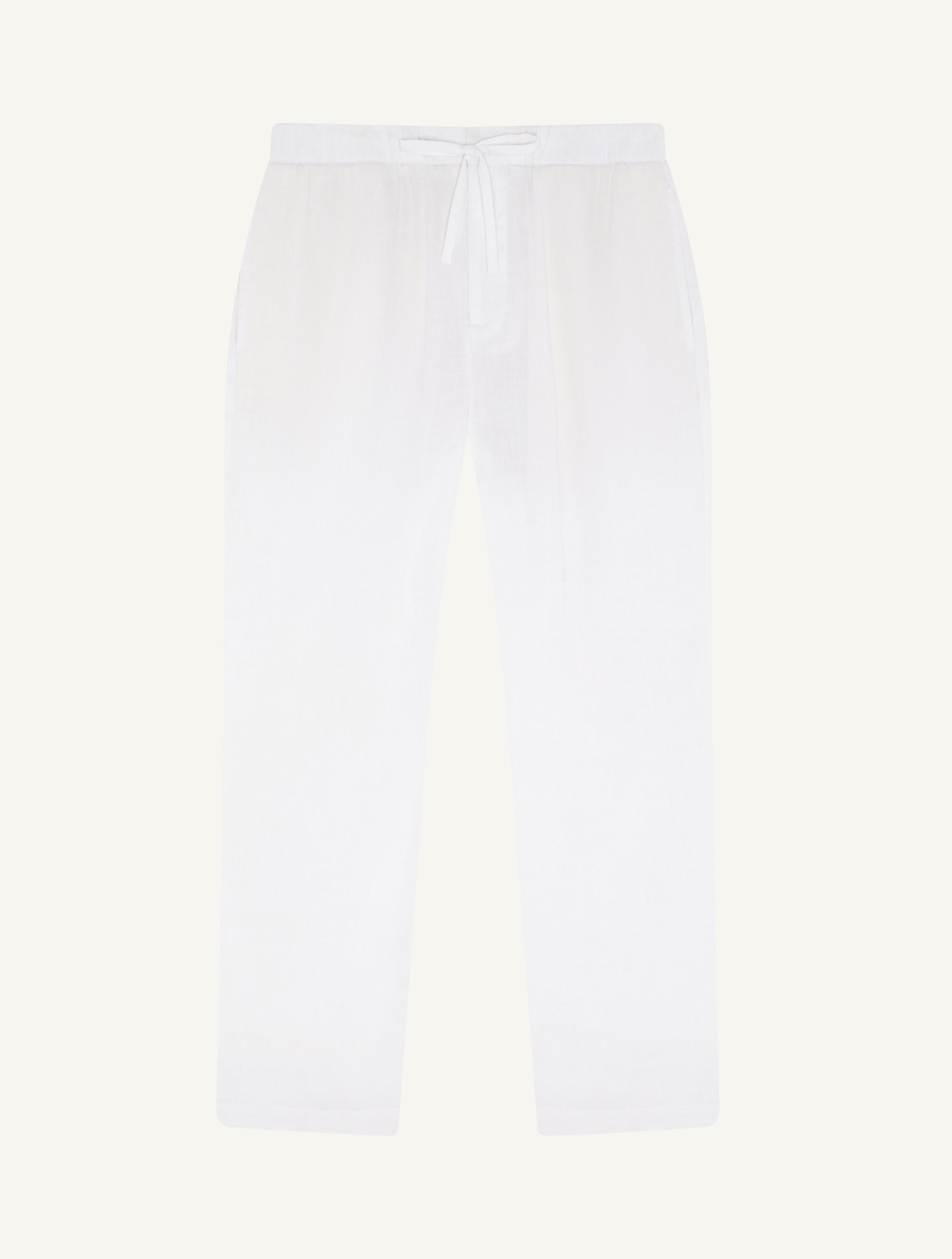 Our bestselling Oscar trousers are a house favourite, designed for a classic tapered fit. Celebrated for their versatility, Oscar features a comfortable, elasticated waist with adjustable drawstring for a personalised fit. Cut from a bespoke linen-blend, this fabrication is unique to FRESCOBOL CARIOCA, developed meticulously with our artisans for optimal function and form.