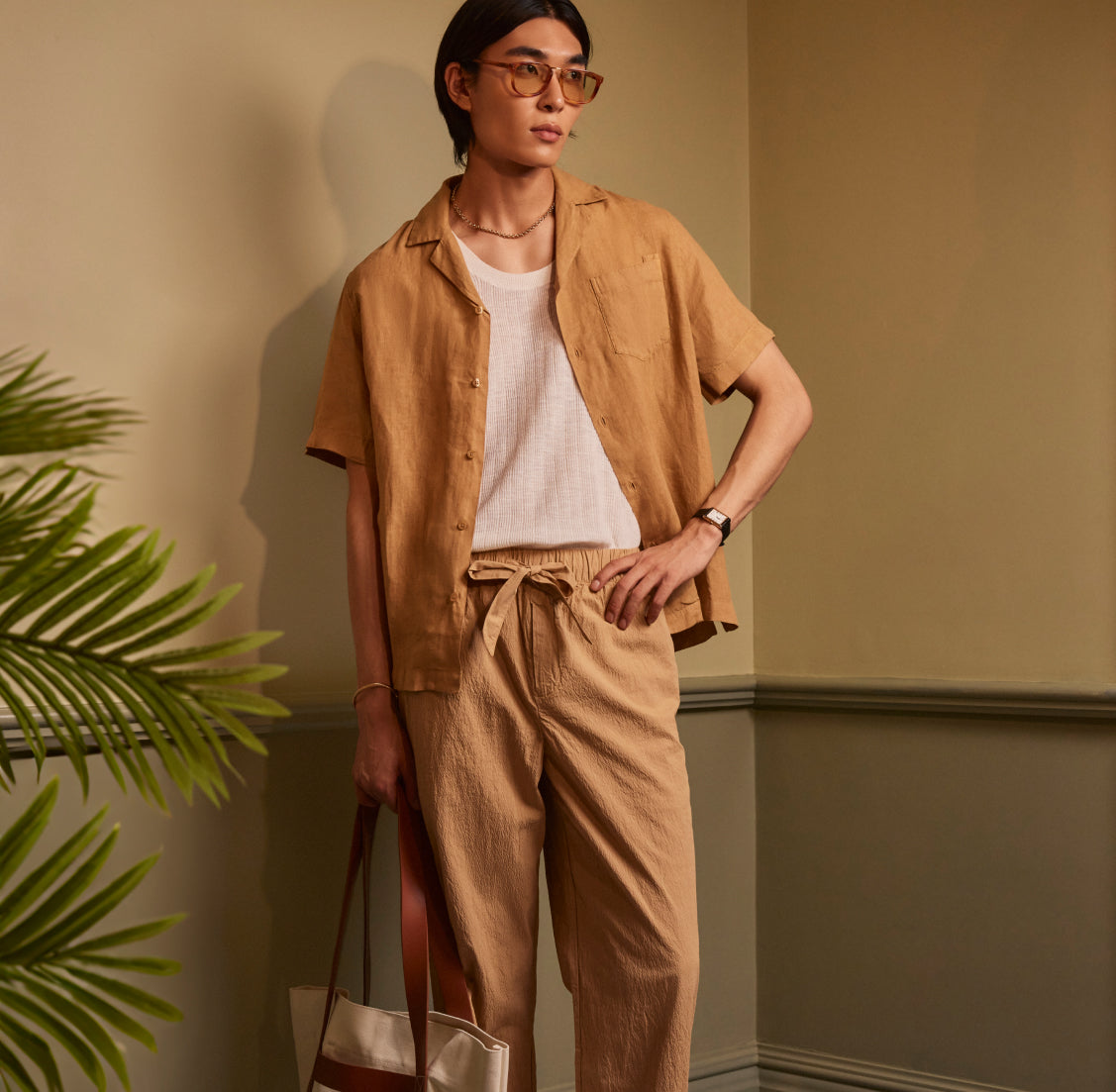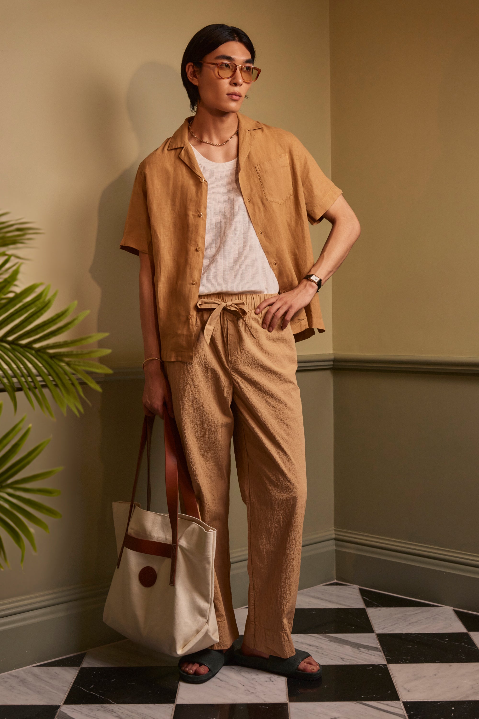 Our loose fit linen trousers, Luan, are updated in an ultra lightweight seersucker fabrication Combining the comfort of loungewear with the easy elegance of a long-line silhouette, Luan is crafted for resort and city leisure.