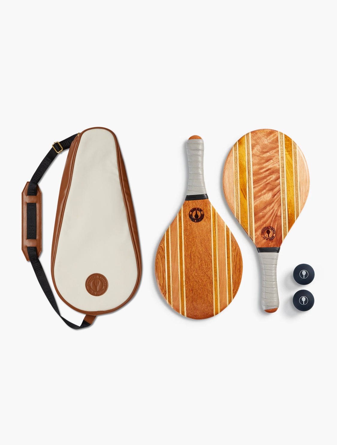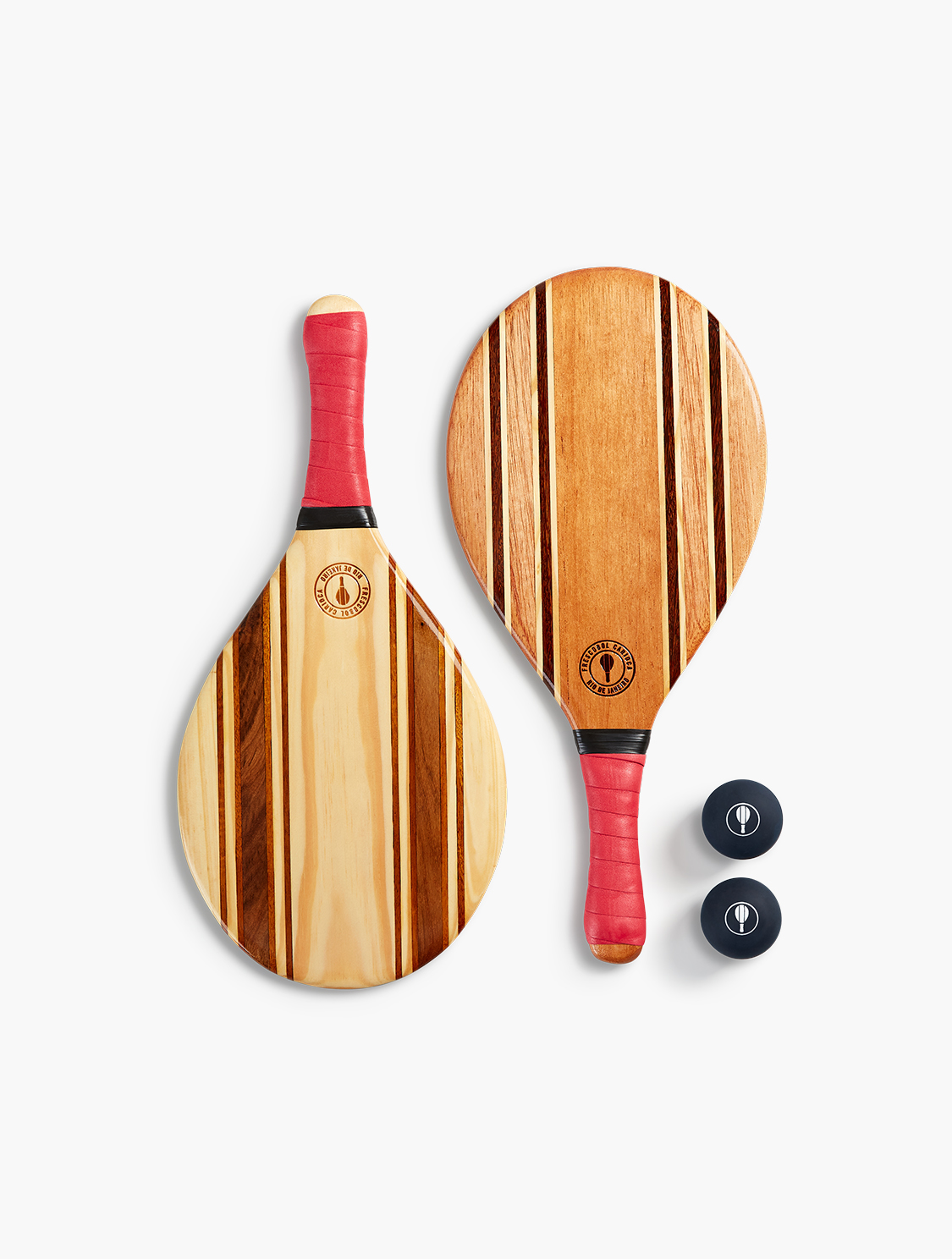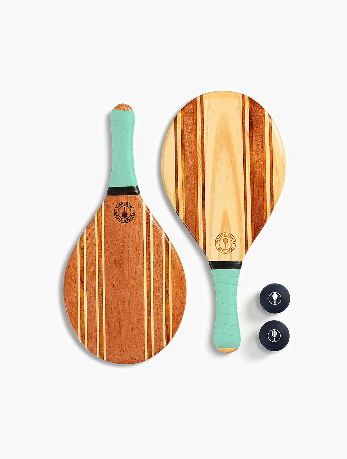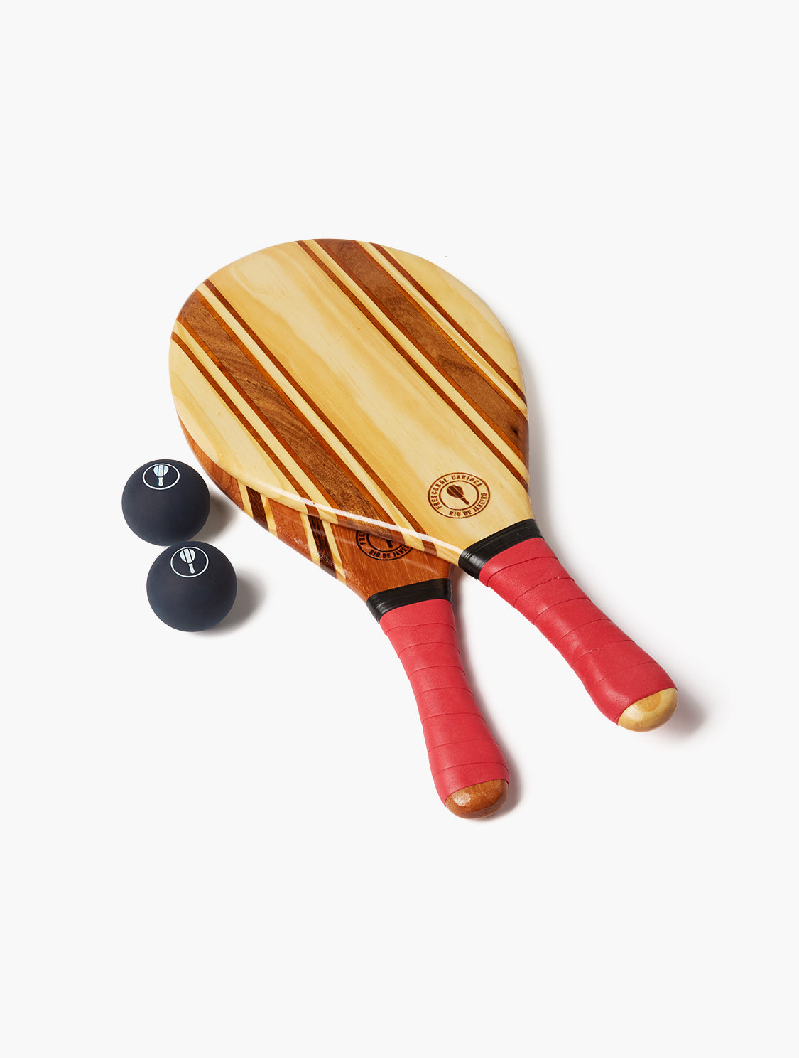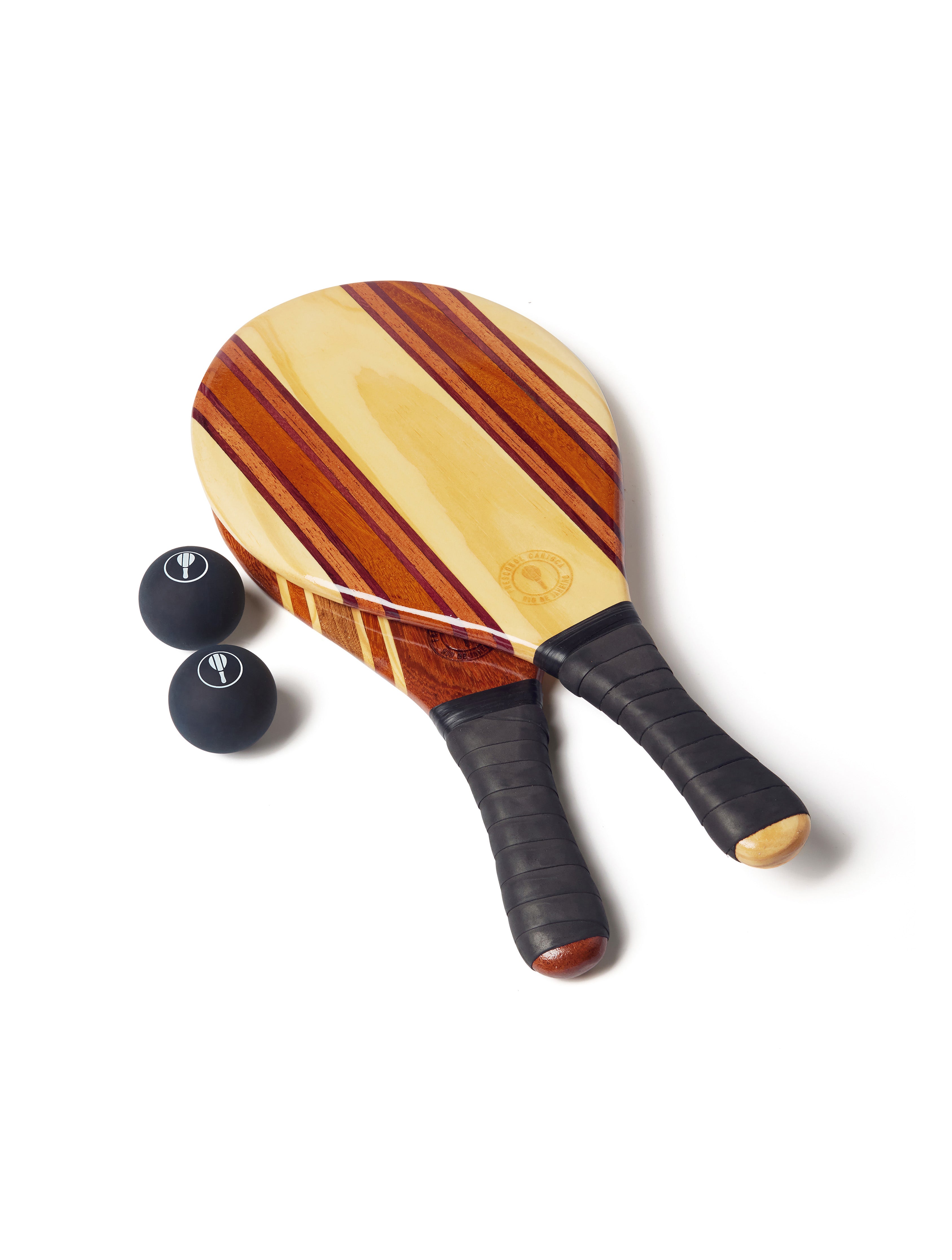 Hand-carved by Brazilian marceneiros from sustainably sourced wood offcuts, each frescobol bat is one-of-a-kind. Finished with a sea and sand-resistant resin, our eponymous beach bat fuses practical playful charm with refined craftsmanship.