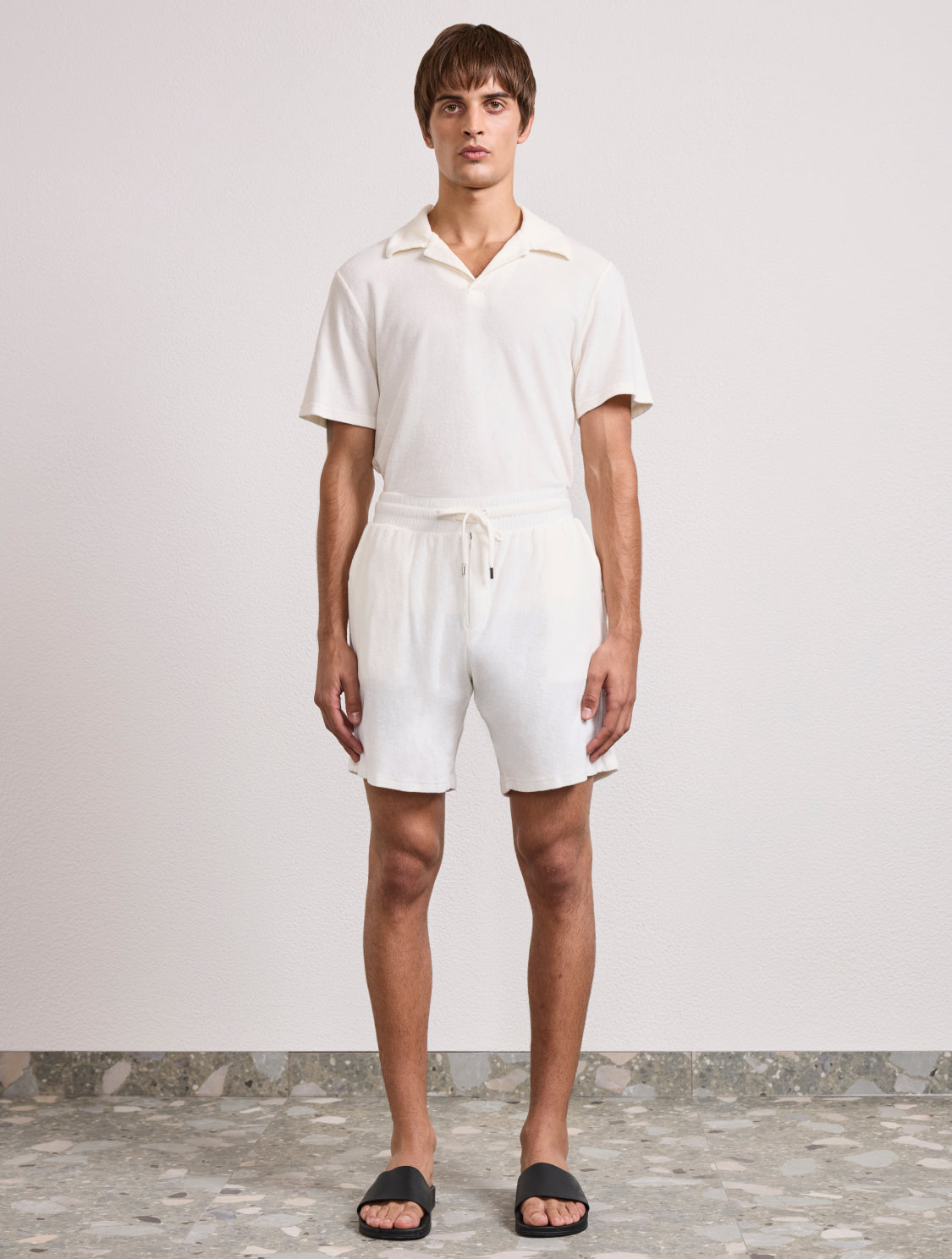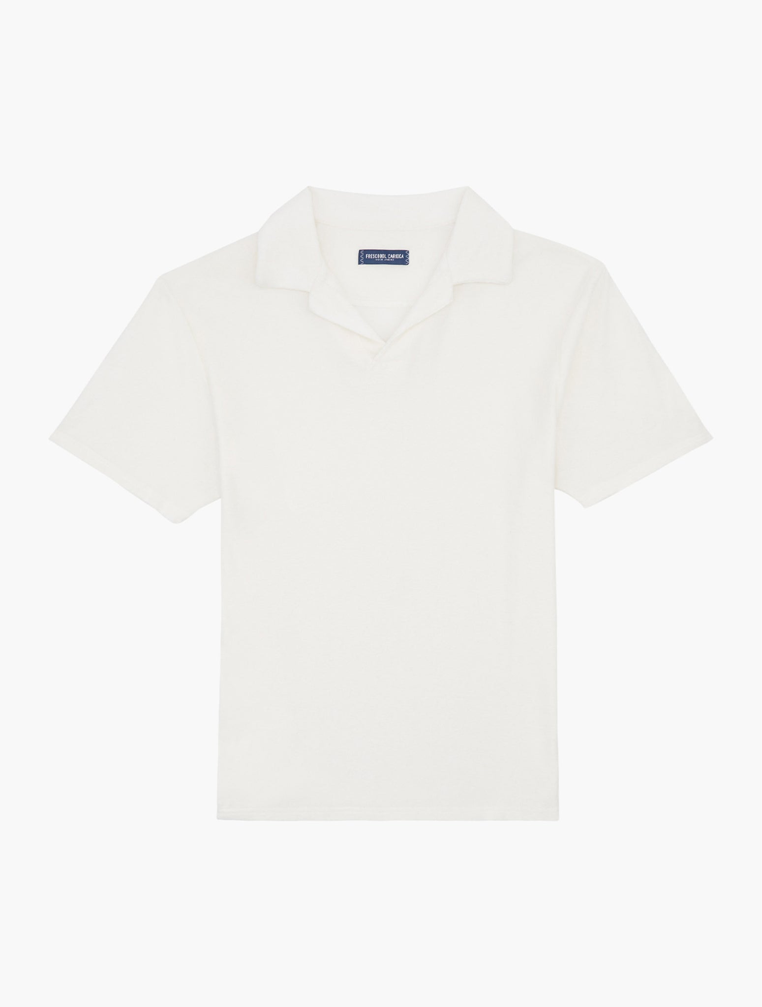 Faustino polo features a buttonless open collar and is crafted from a unique linen-lyocell blend that softens with every wear. Heroed for its versatility, Faustino is designed to take you from beach to city lounging - a modern take on a vintage resort classic. Pair with Augusto shorts for a full look.Our house blend terry cotton was developed meticulously with our artisans to find the optimal balance of comfort and durability. This supremely supple, long-lasting fabrication is unique to FRESCOBOL CARIOCA.