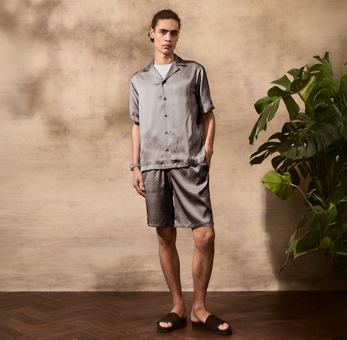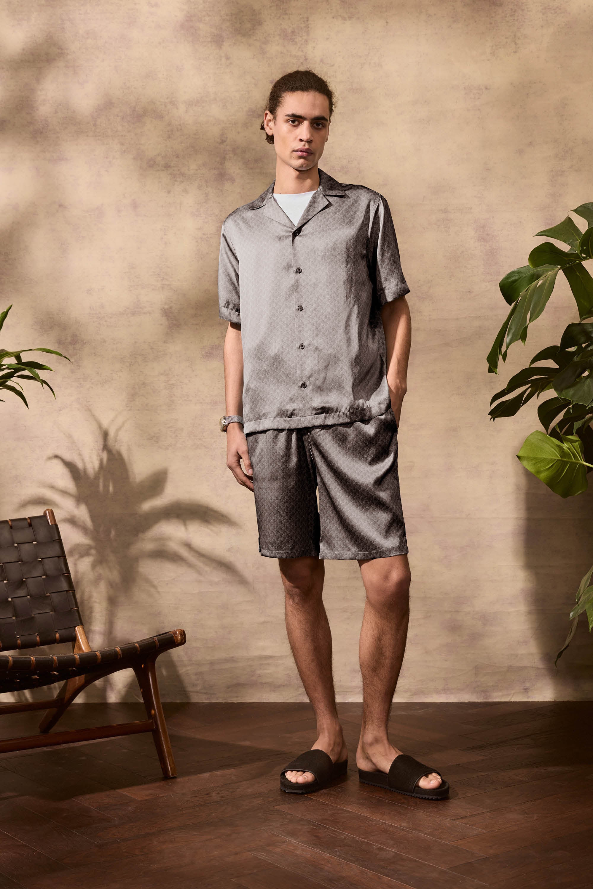 Elevate your wardrobe with Palma, our printed silk shorts. Designed for the perfect drape, and constructed with stretch for optimal comfort, Palma features our bespoke Wood Knot print. Pair with matching silk shirt Roberto for a luxurious full look. Designed for evening wear.