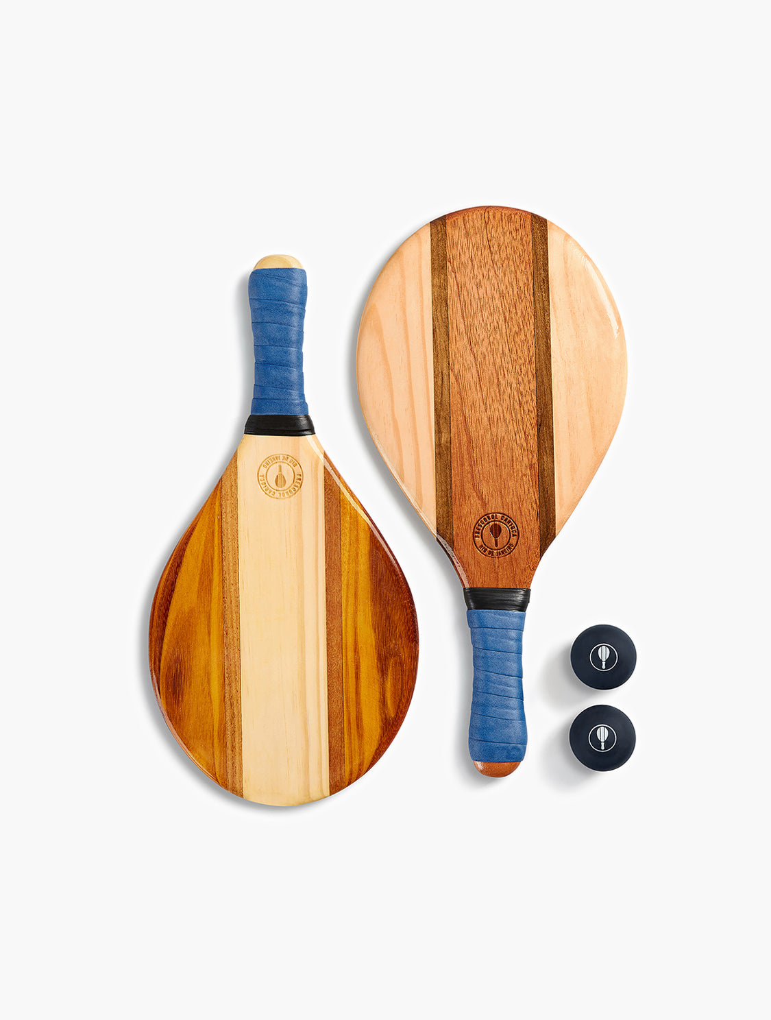 Hand-carved by Brazilian marceneiros from sustainably sourced wood offcuts, each frescobol bat is one-of-a-kind. Finished with a sea and sand-resistant resin, our eponymous beach bat fuses practical playful charm with refined craftsmanship.