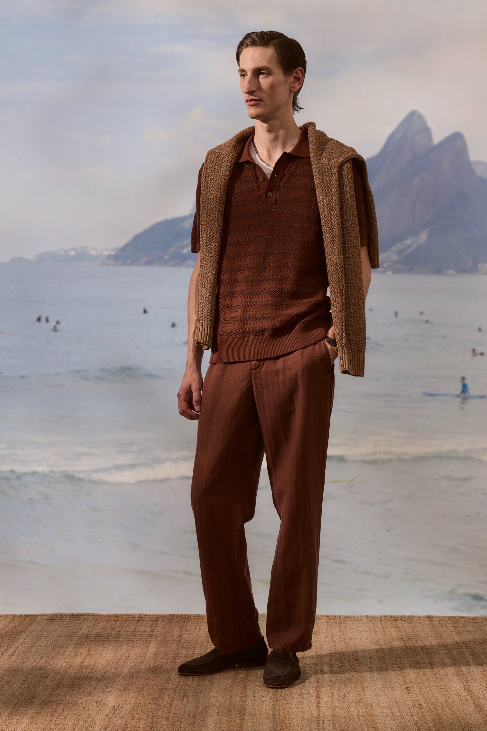 Woven from 100% cotton, the Vidal polo is designed for a regular fit with a classic button up closure. The intricate jacquard stitch pattern artfully interprets our signature wave design into a tactile, elegant texture adding movement to an otherwise classic silhouette. Vidal is designed to layer in cooler climates or wear as a sophisticated solo statement.