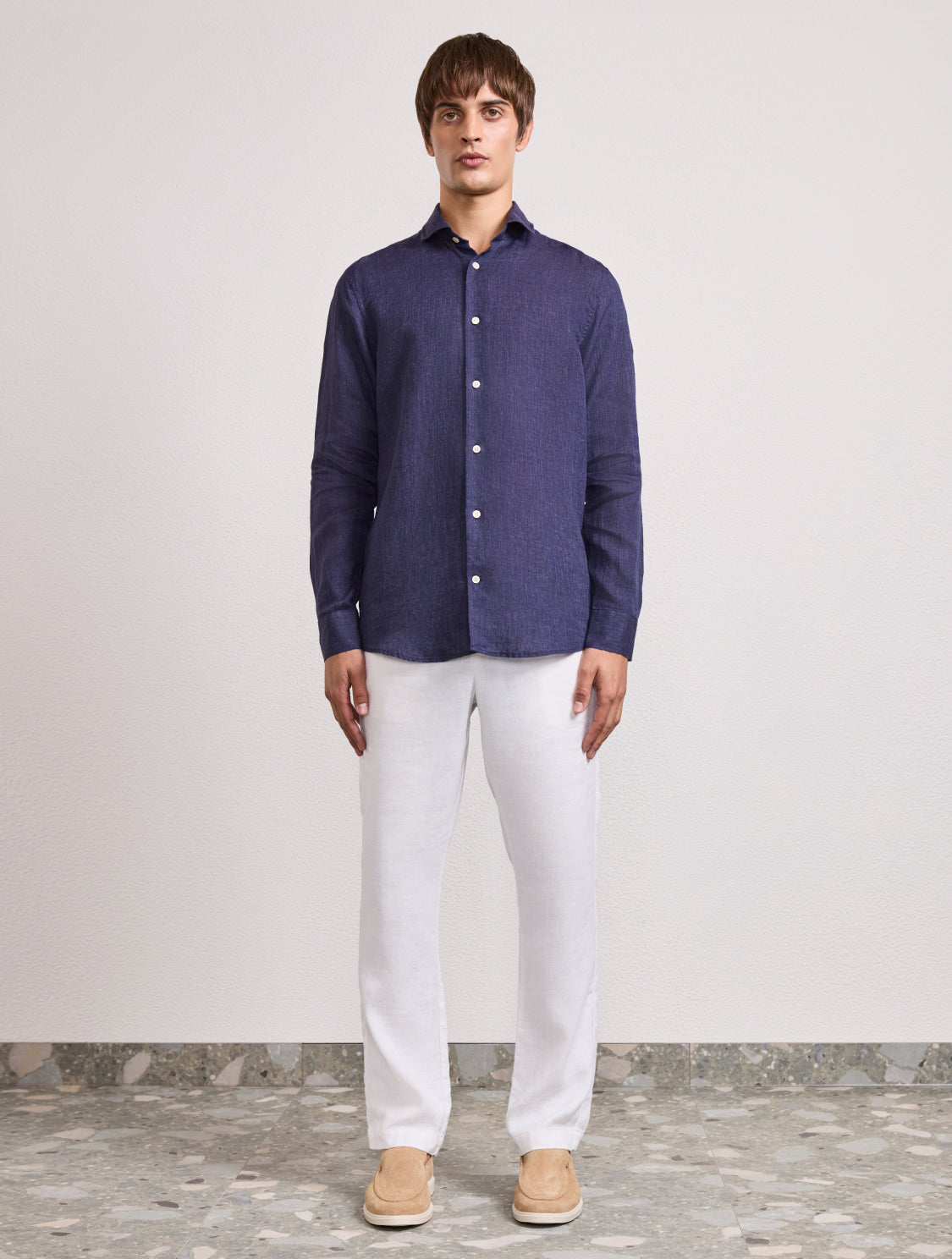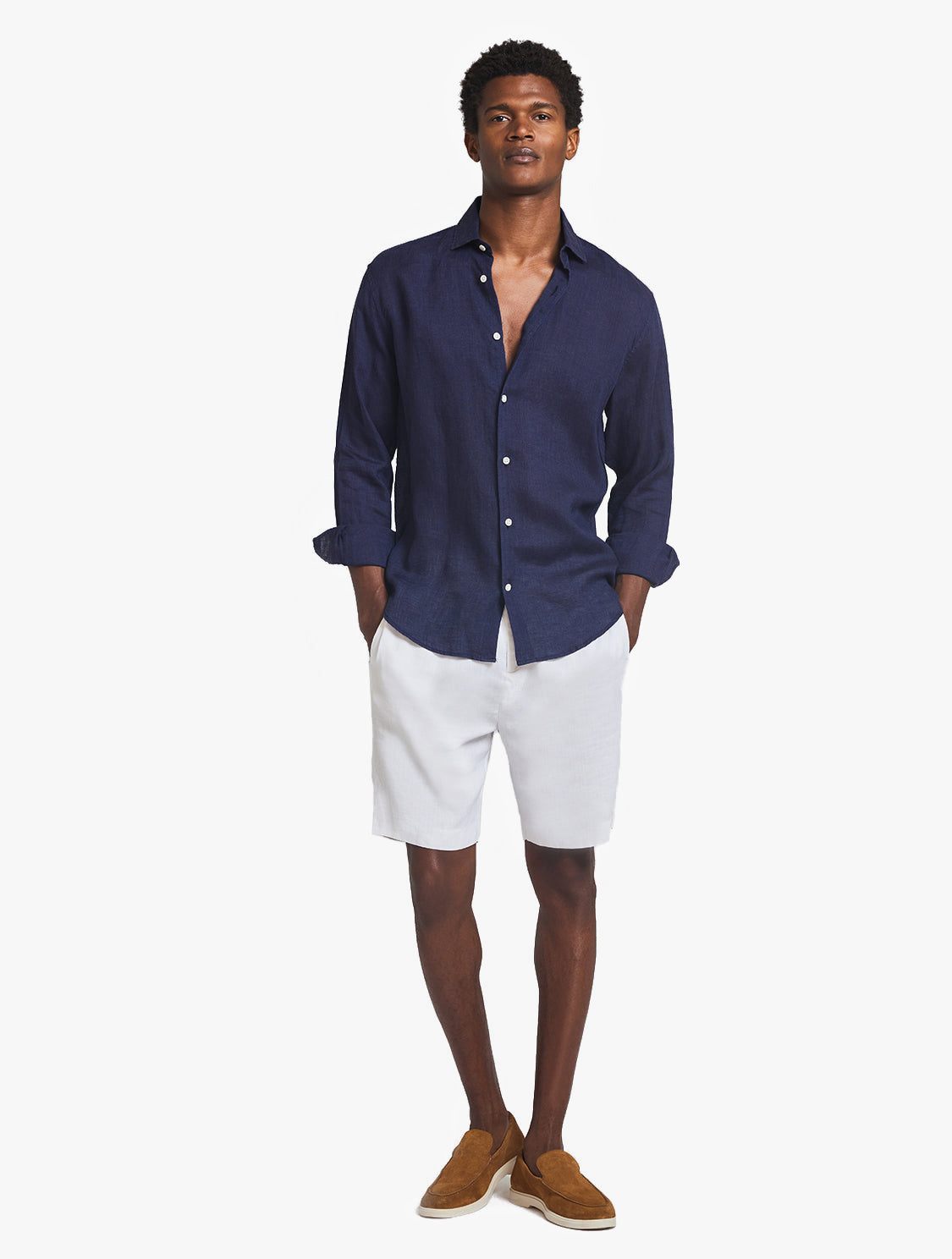 Our bestselling Antonio shirt is a house classic. Casual but refined, Antonio is the definitive FRESCOBOL CARIOCA shirt for leisure time dressing. Cut from the finest luxury linen, Antonio features a cutaway collar and imitation mother of pearl buttons. Perfect worn alone or under a jacket for a smart-casual look.