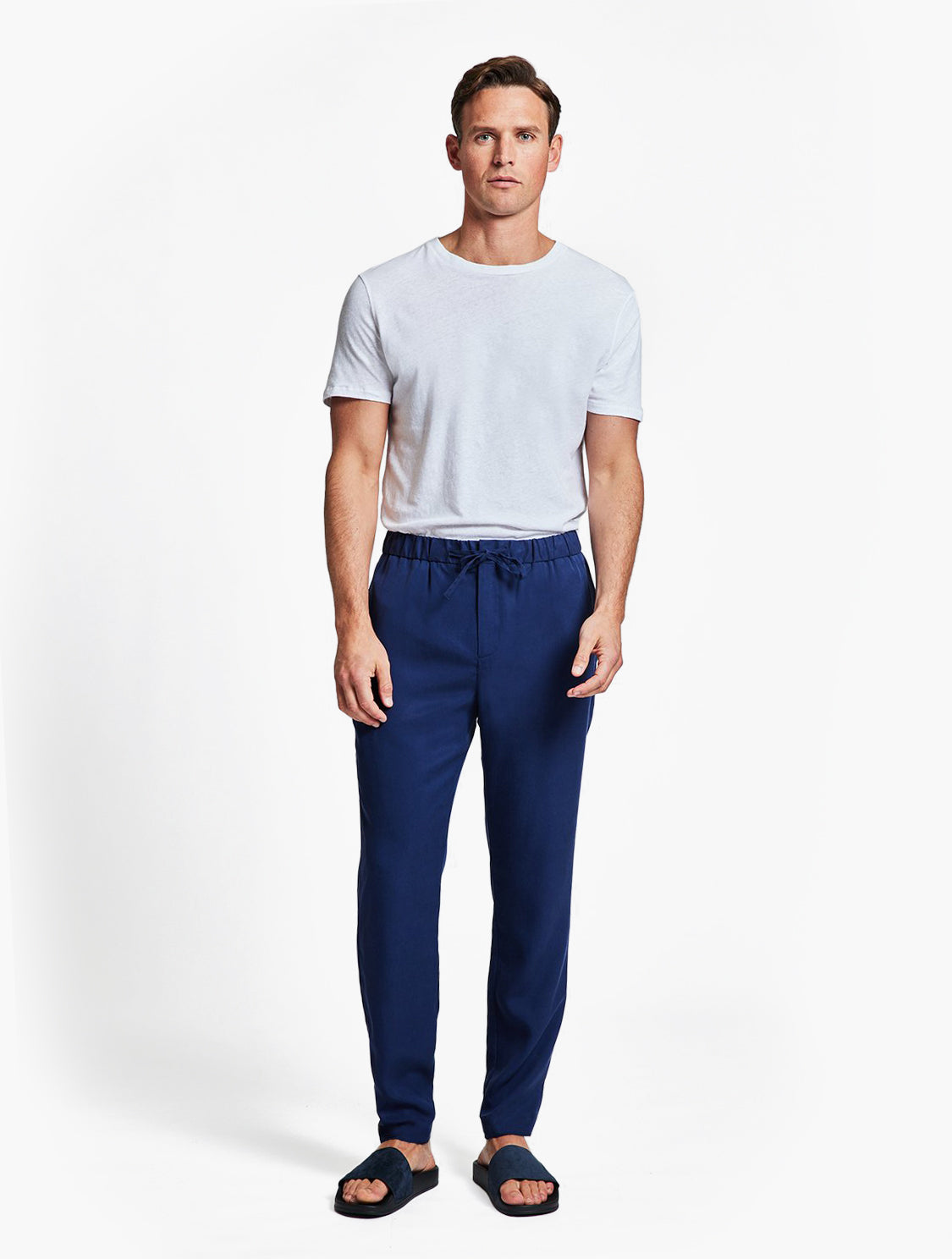 Our bestselling Oscar trousers are a house favourite, designed for a classic tapered fit. Celebrated for their versatility, Oscar features a comfortable, elasticated waist with adjustable drawstring for a personalised fit. Cut from a bespoke linen-blend, this fabrication is unique to FRESCOBOL CARIOCA, developed meticulously with our artisans for optimal function and form.