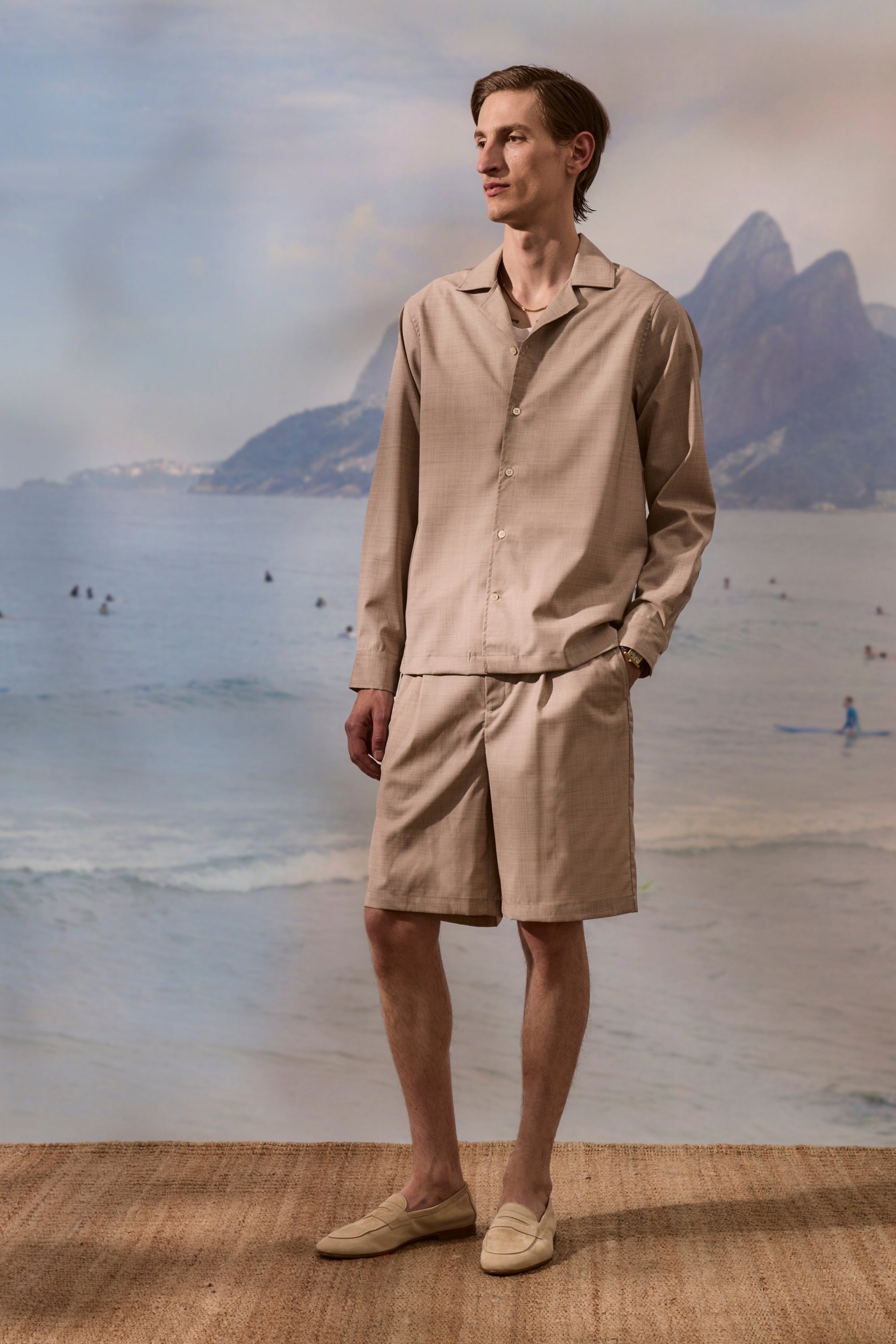 Part of our Travel Suiting three-piece wardrobe in Tropical Wool, Safra refines the relaxed shirt silhouette with softly structured precision. Defined by a casual camp collar and fluid drape, it balances ease with tailored intent, suited to both transit and arrival. Wear with the Luan trousers or Sereno shorts - or pack both for a fully interchangeable travel set.