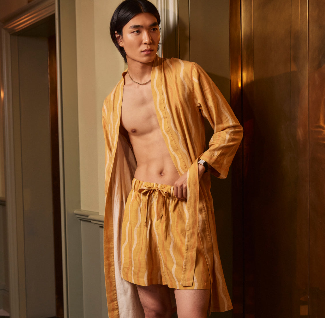 For relaxed days and restful nights, our elegant Tefe robe is made from 100% linen. Adorned with a soothing iteration of our signature Copacabana Wave design, Tefe is a leisure wardrobe essential. Designed to be worn solo, or pair back with matching Cassio shirt and Lucas shorts.